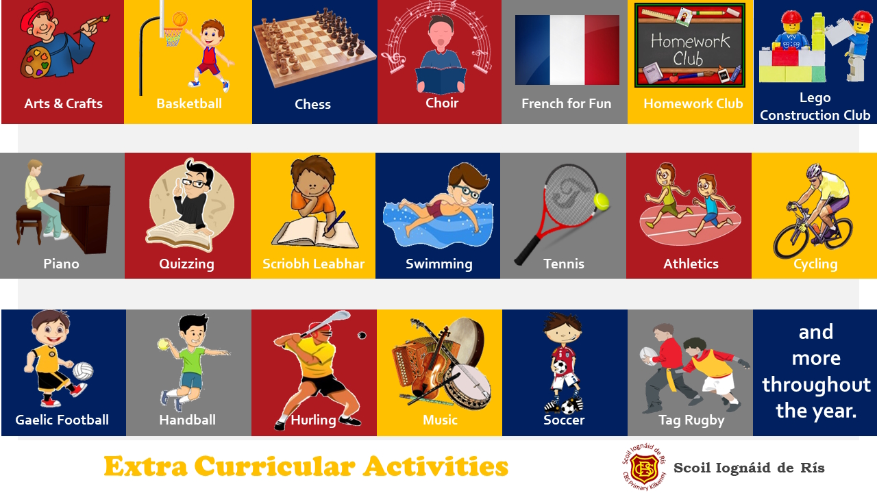 Below are just some of the Extra Curricular Activities that our pupils will have an opportunity to do in our school. Please note that these activities are currently offered to our 2nd – 6th class pupils.